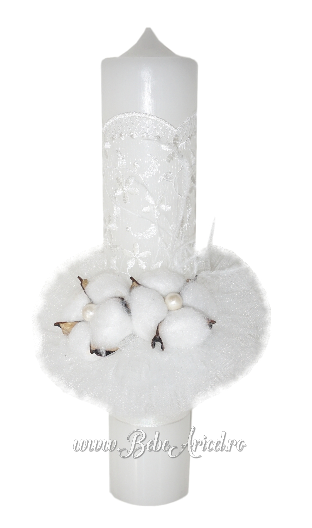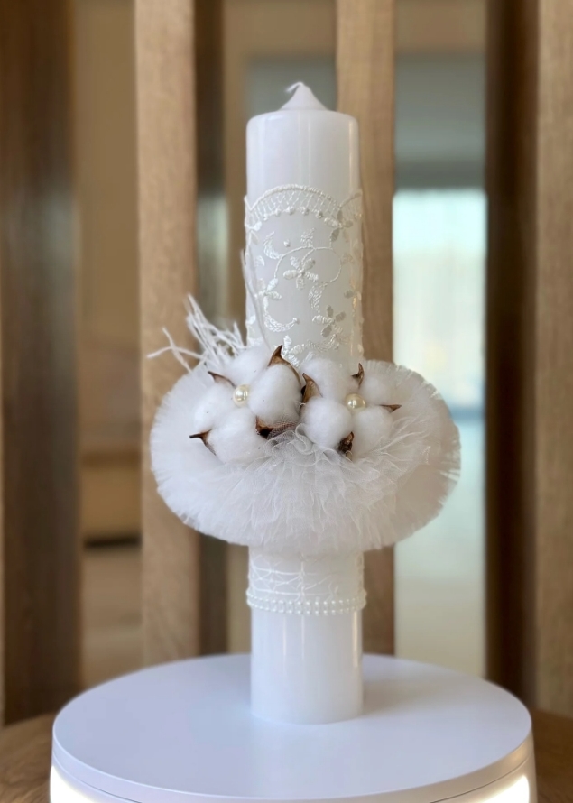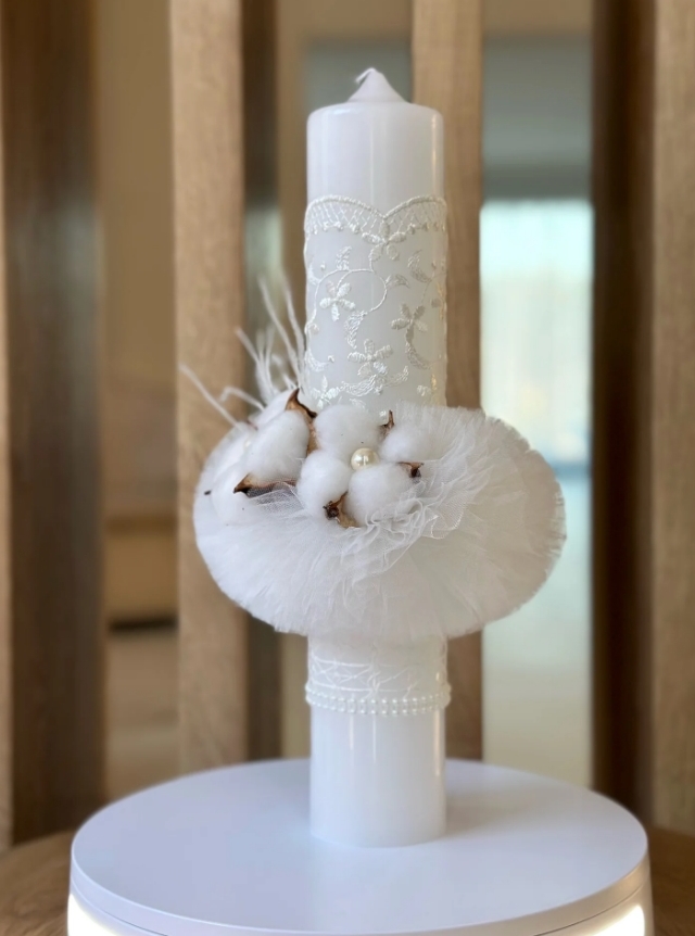 Lumanare stalp pentru botez FLORI DE BUMBAC
