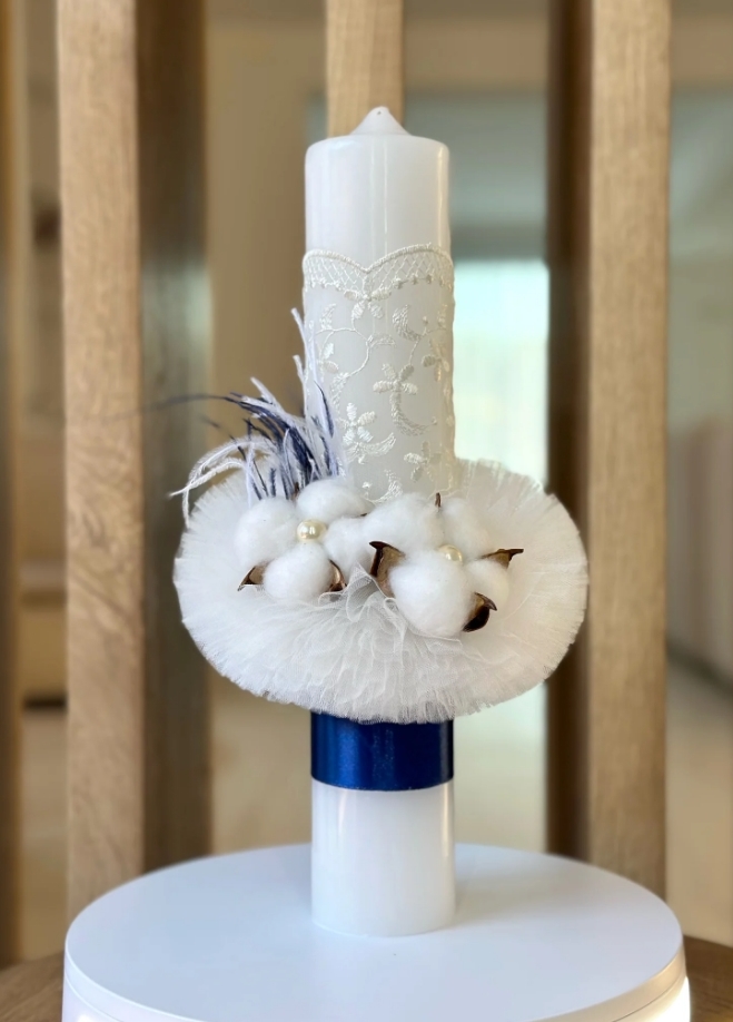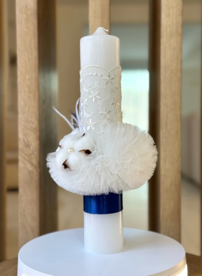 Lumanare stalp pentru botez FLORI DE BUMBAC