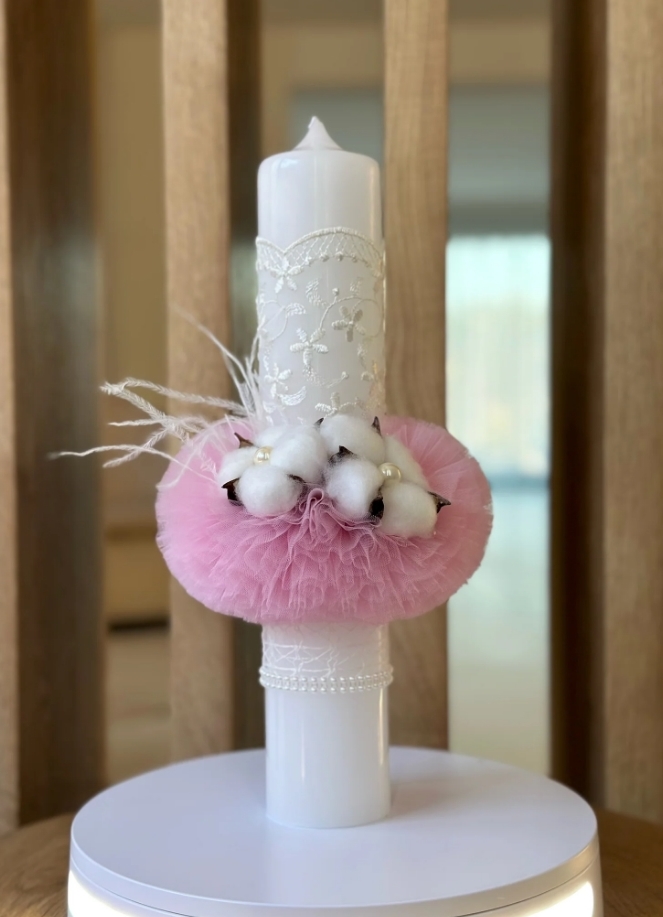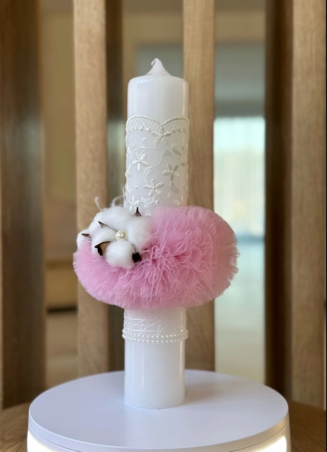 Lumanare stalp pentru botez FLORI DE BUMBAC