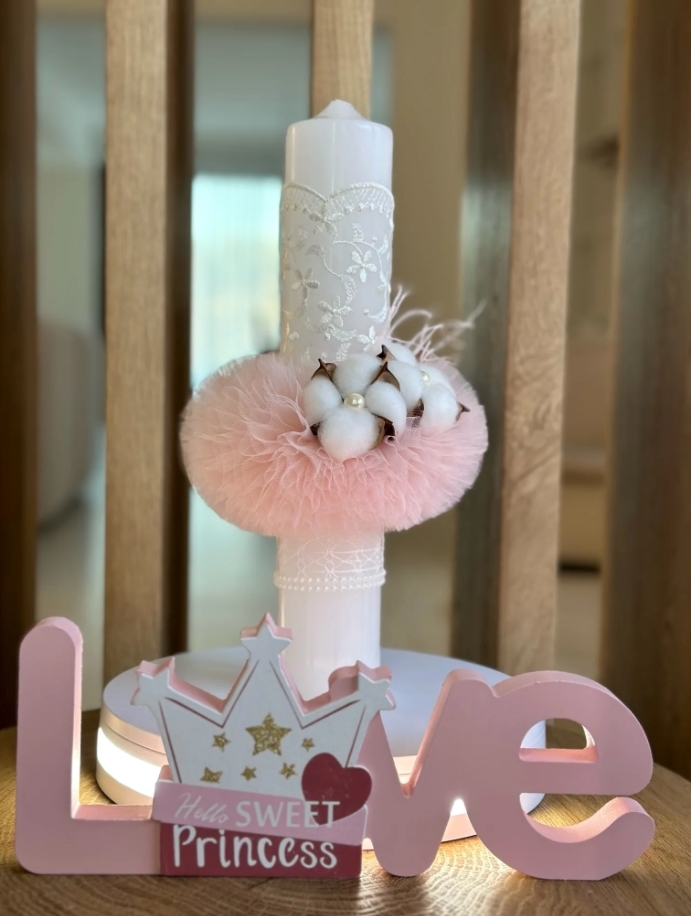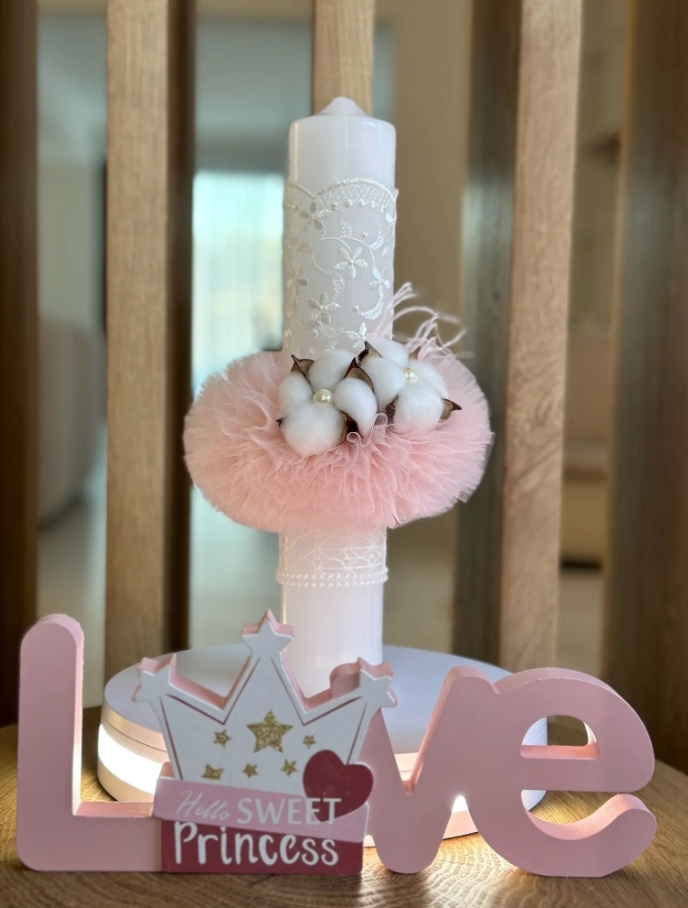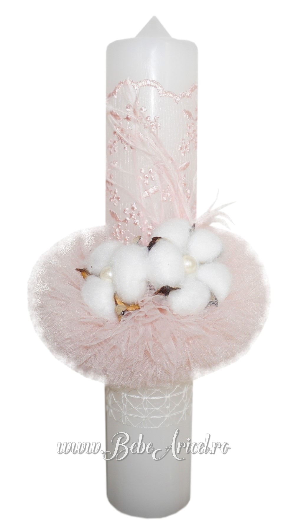 Lumanare stalp pentru botez FLORI DE BUMBAC