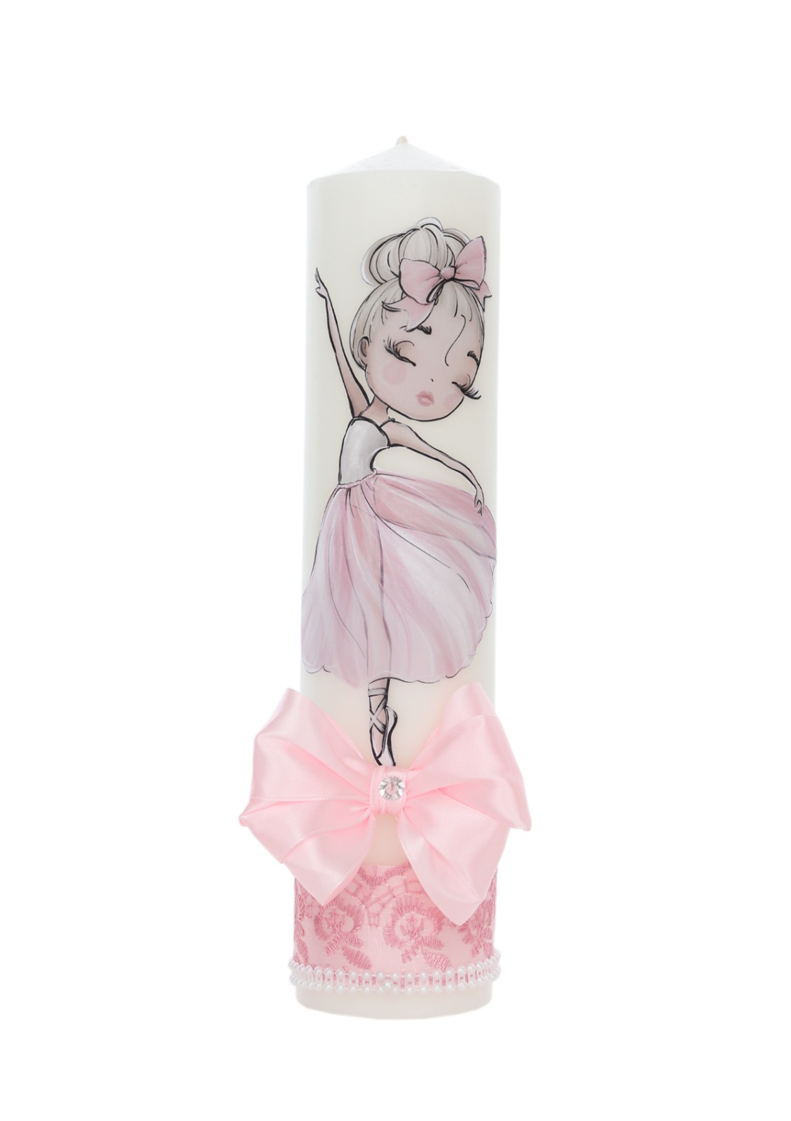 Lumanare stalp pentru botez bebelusi decorata BALERINA