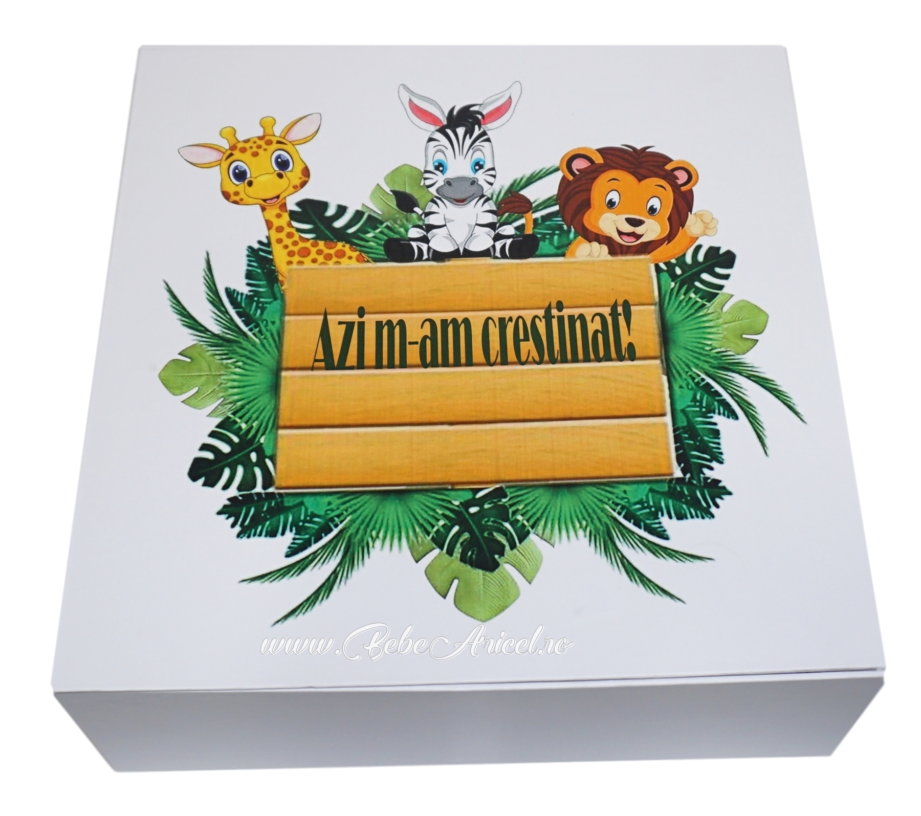 Introducere » Seturi complete botez » Pachet 9 piese: trusou pentru botez, cutie pentru trusou si lumanare pentru botez - JUNGLE, SAFARI