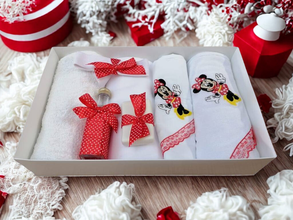 Trusou pentru botez (7 piese) brodat - MINNIE MOUSE - se poate personaliza
